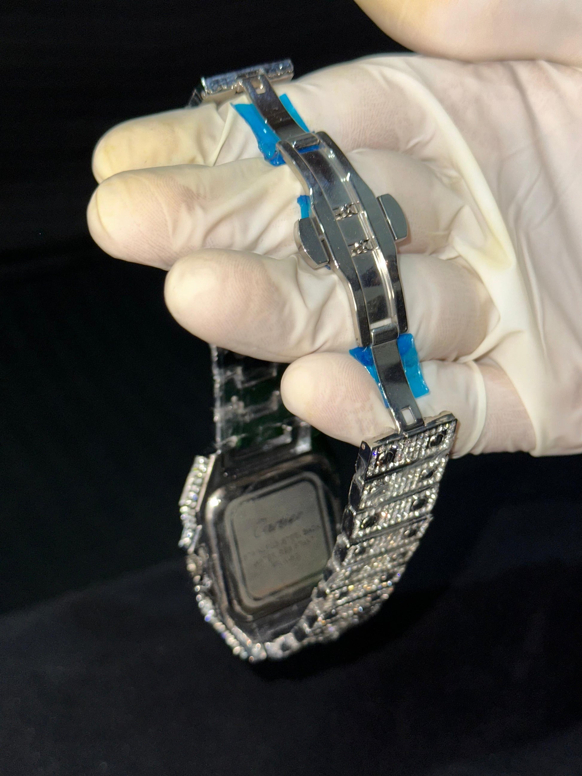 Dare to stand out with the Cartier Iced Edition, a masterpiece drenched in shimmering brilliance. Every inch of this timepiece is encrusted with precision-cut stones, reflecting pure luxury and dominance. The bold square case and diamond-set bracelet create an aura of unmatched prestige and confidence — made for those who live to shine.