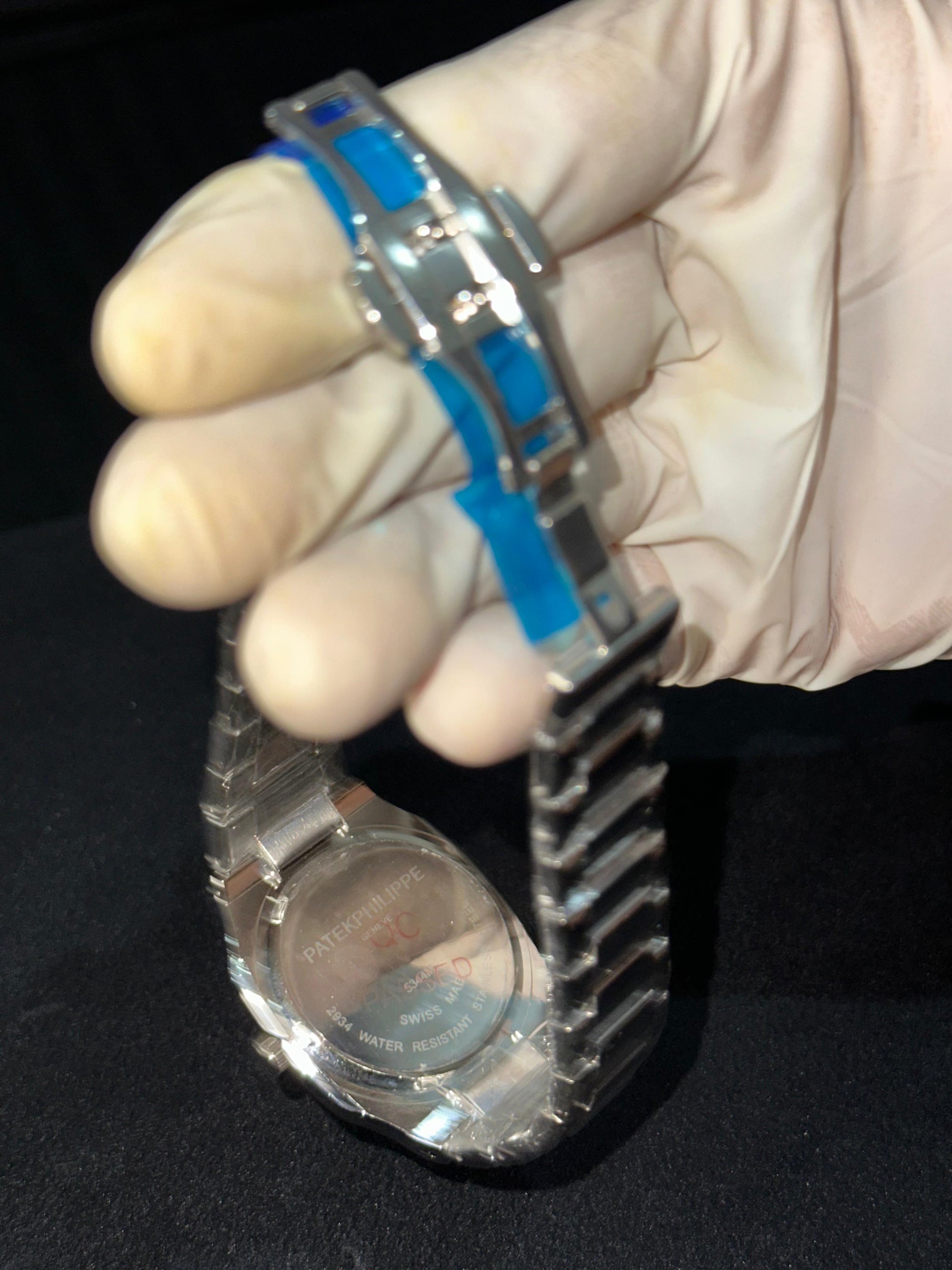 Step into a world of timeless elegance with the Patek Philippe Arabic Edition, a masterpiece that blends modern sophistication with cultural artistry. Its deep ocean-blue dial, adorned with intricate Arabic calligraphy, radiates prestige and individuality. The sleek silver stainless-steel case and bracelet reflect refined craftsmanship, making it a statement of pure class and heritage.