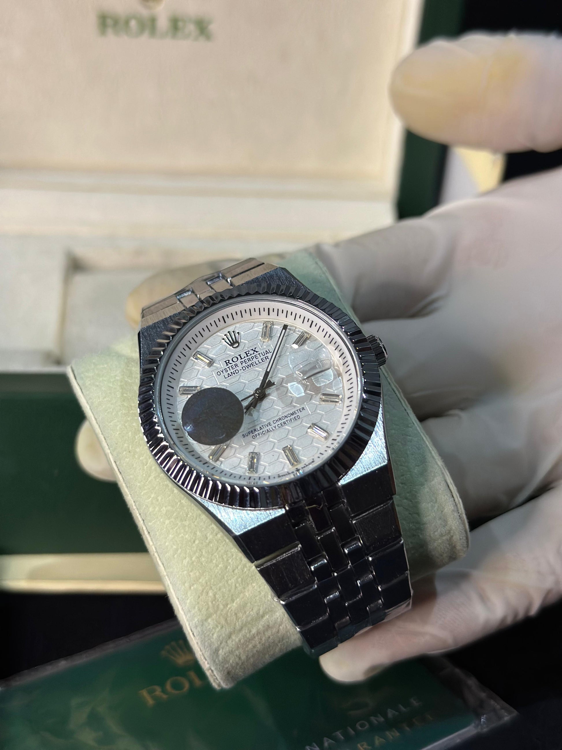 Introducing the Rolex Land Dweller, where timeless craftsmanship meets modern brilliance. Designed for those who lead with confidence and live with purpose, this watch embodies power in its purest form. The radiant silver dial, polished steel case, and bold Roman numerals speak of refined strength — a statement of success and precision.